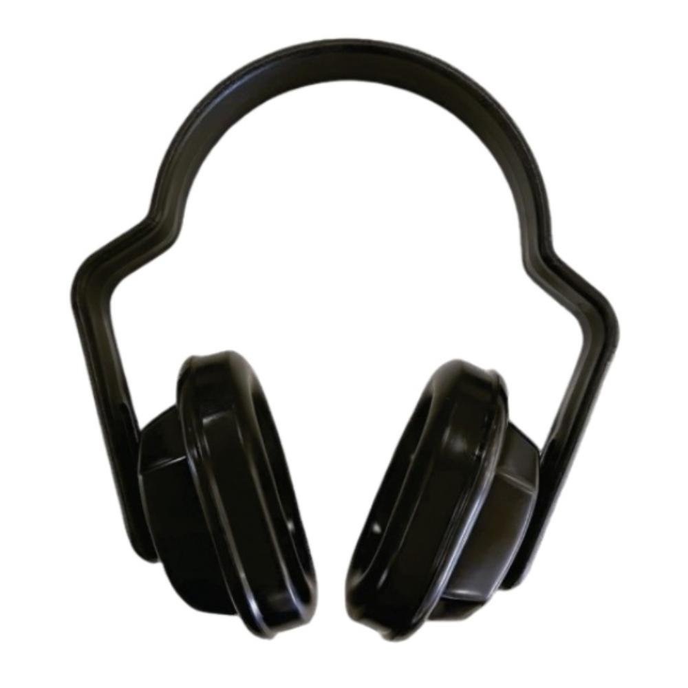Protetor auditivo tipo concha constituído por duas conchas de polietileno na cor preta, unidas por uma haste flexível de