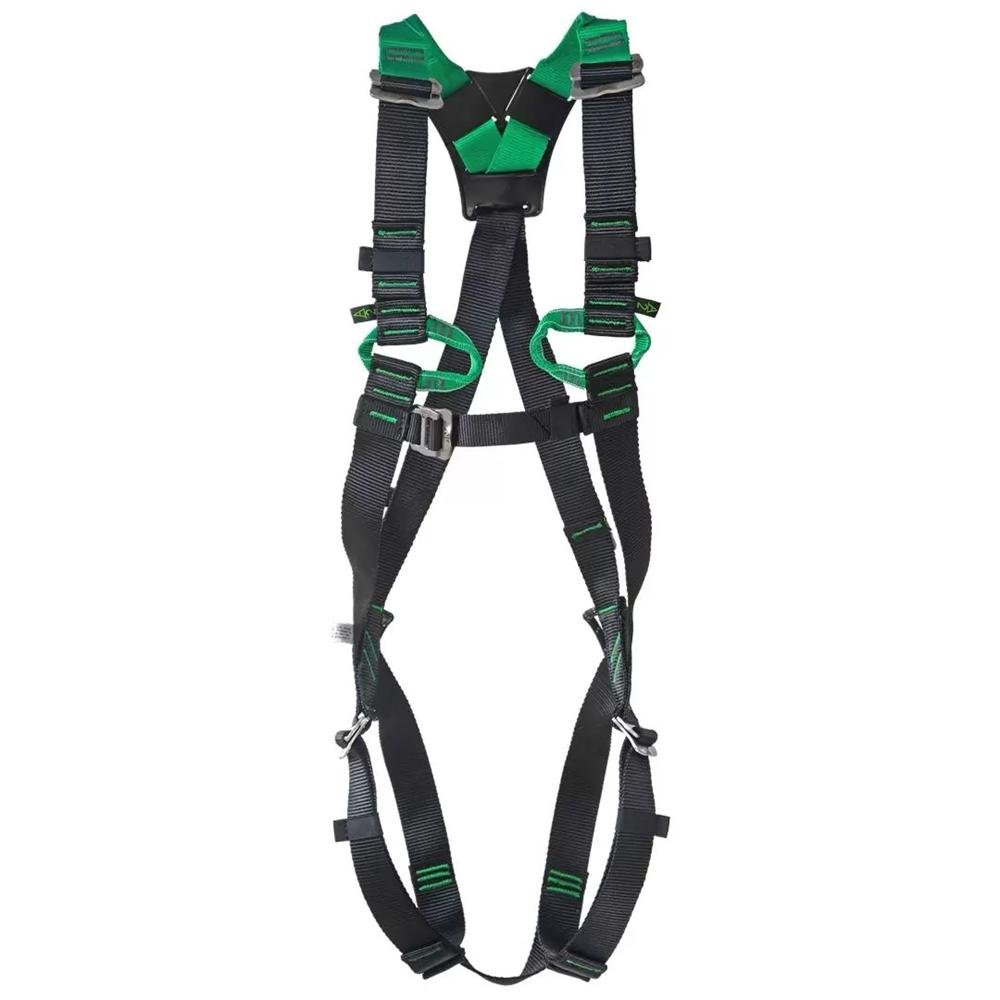 Possui dois pontos de conexão para acessórios contra queda, sendo um ponto peitoral, formado pela união de dois anéis em fita nos suspensórios (A/2) e outro ponto dorsal em aço inox (A);