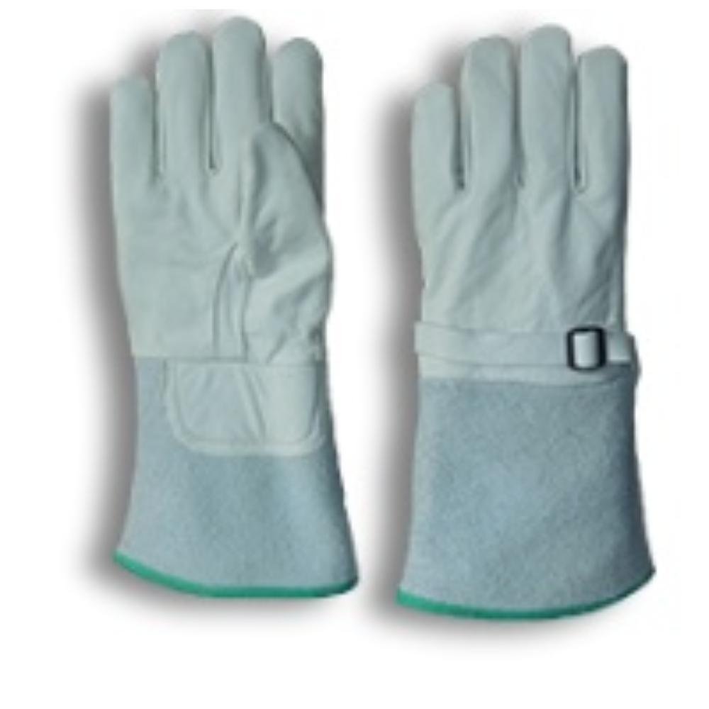 Luva confeccionada em couro bovino (vaqueta) na palma e no dorso e couro bovino (raspa) no punho, com tira e fivela para regulagem no dorso. Esta luva destina-se a proteger outra luva isolante de borracha e não o trabalhador. Mais utilizada por eletricistas.