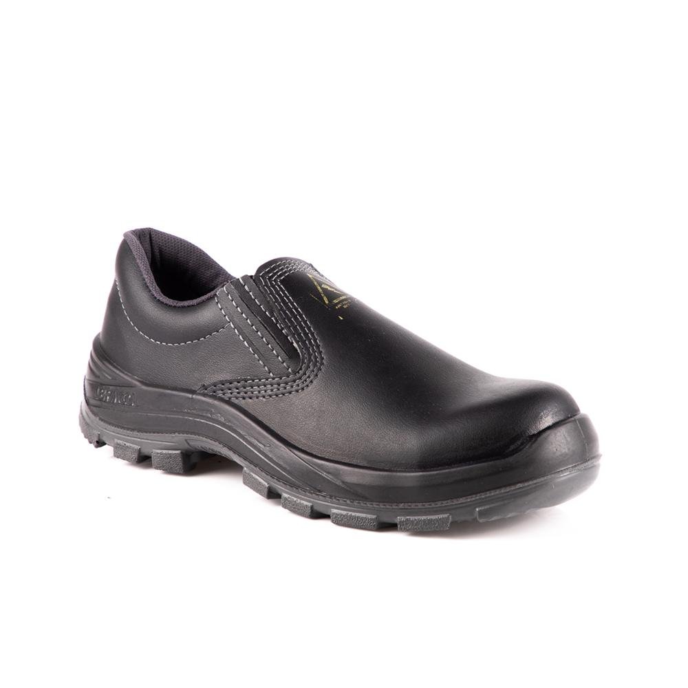 Sapato de segurança com fechamento em elástico lateral recoberto confeccionado em microfibra, com colarinho acolchoado, forração interna da gáspea, biqueira de composite, sobrepalmilha em EVA soft e solado poliuretano (PU) bidensidade.