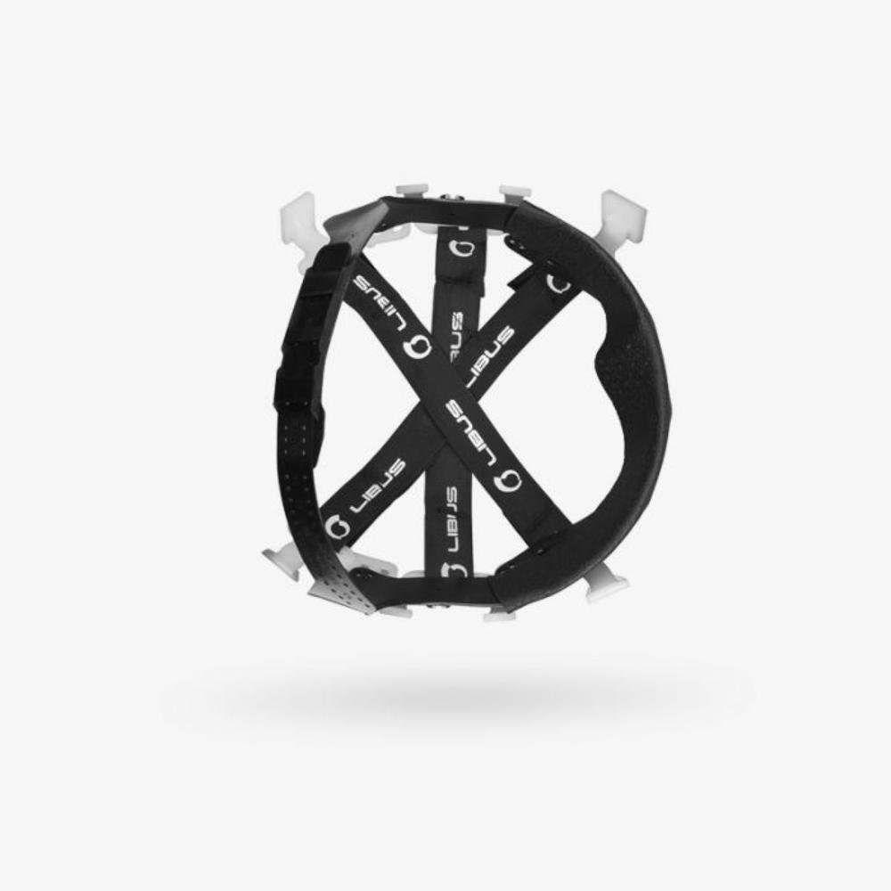 6 tiras de suspensão em 8 pontos de fixação ao capacete.